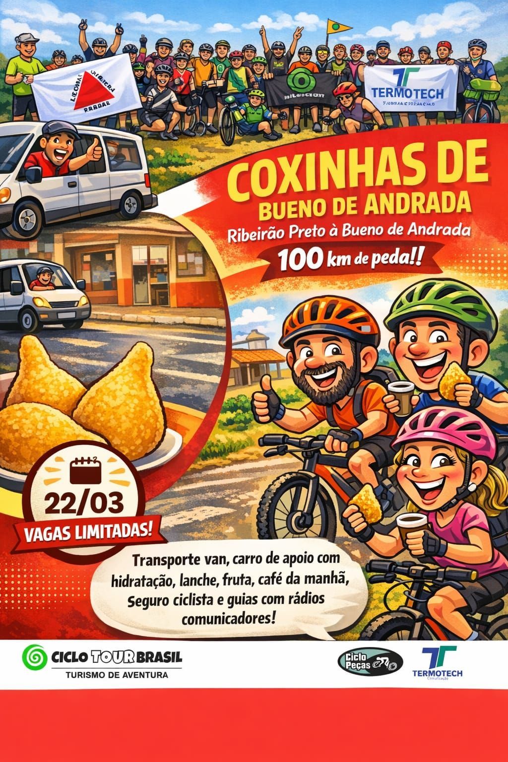 Dia 22/03 tem 100 km de aventura rumo às famosas Coxinhas de Bueno de Andrada 😋🚴♀️
